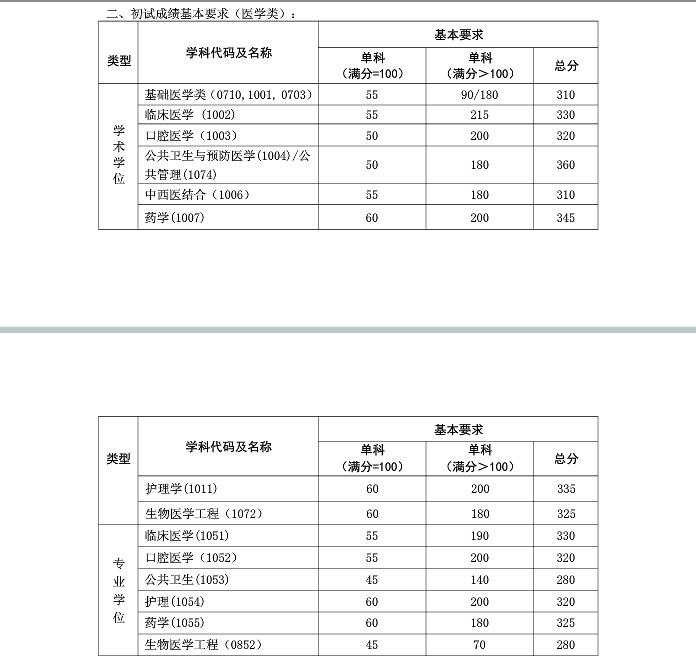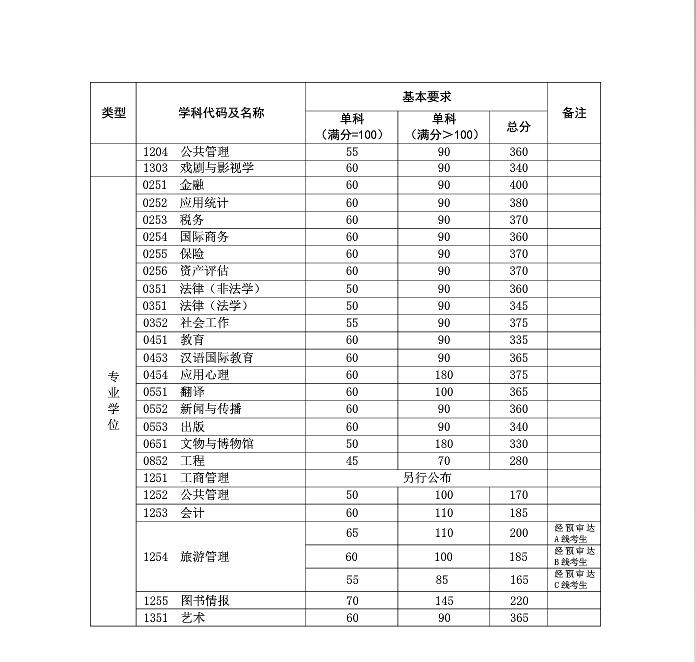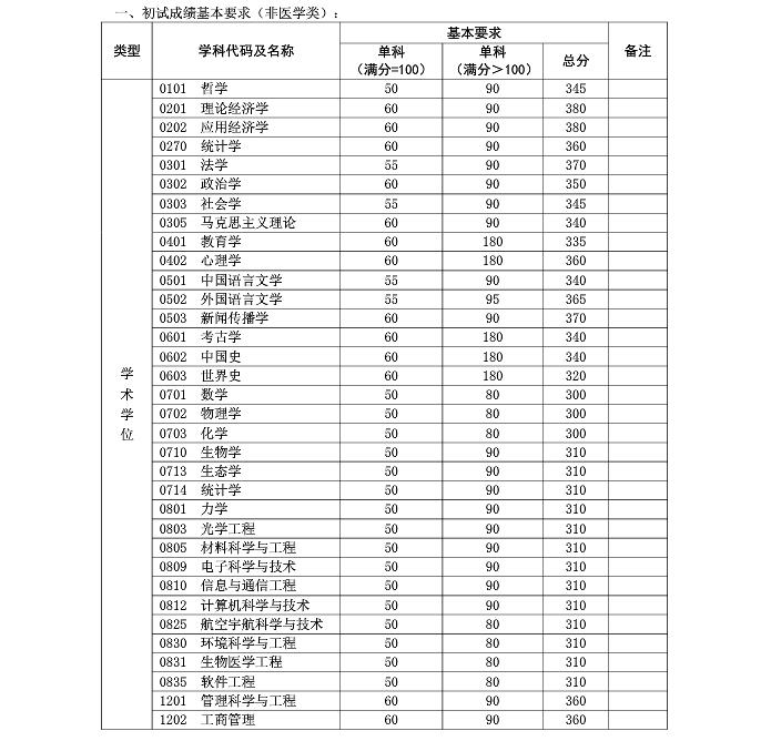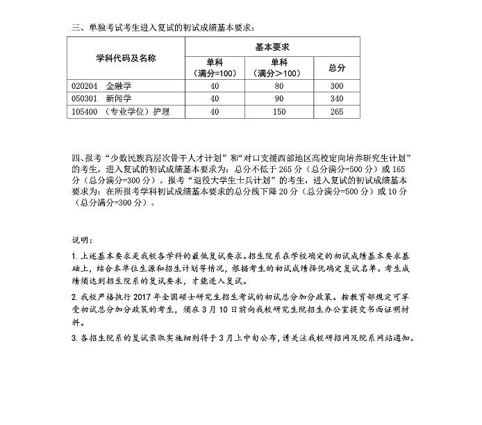 復旦大學2017年碩士研究生招生考試考生進入復試的初試成績基本要求